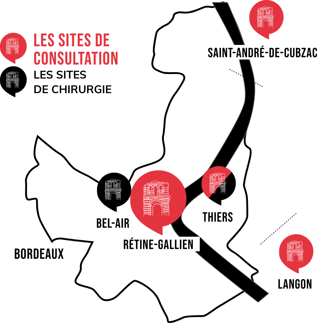 Aujourd’hui déployé sur 6 sites d’exercice en Gironde, le Centre Rétine Gallien prend en charge les pathologies médicale et chirurgicale de la rétine au plus près de ses patients.